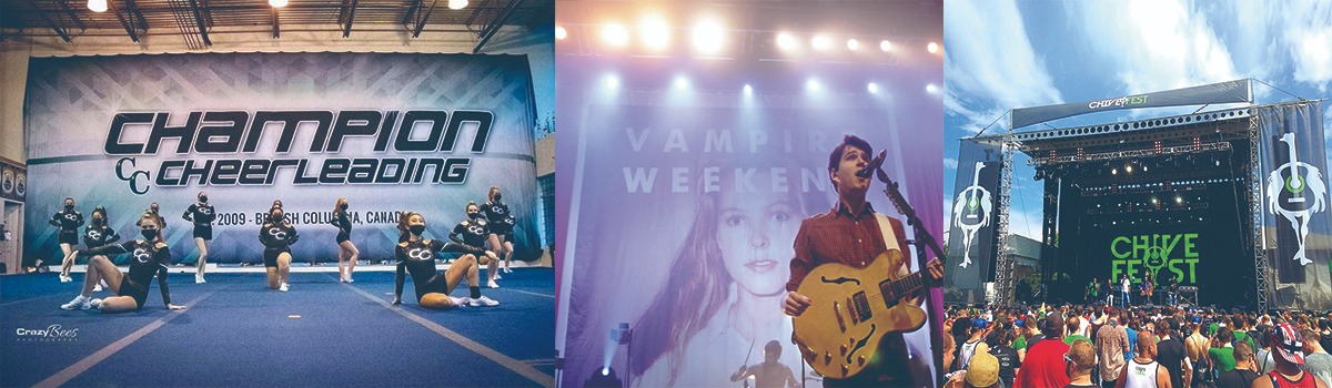 축제 무대 콘서트 배경 메쉬 스크립트 플렉스 배너 음악 스탠드 배너